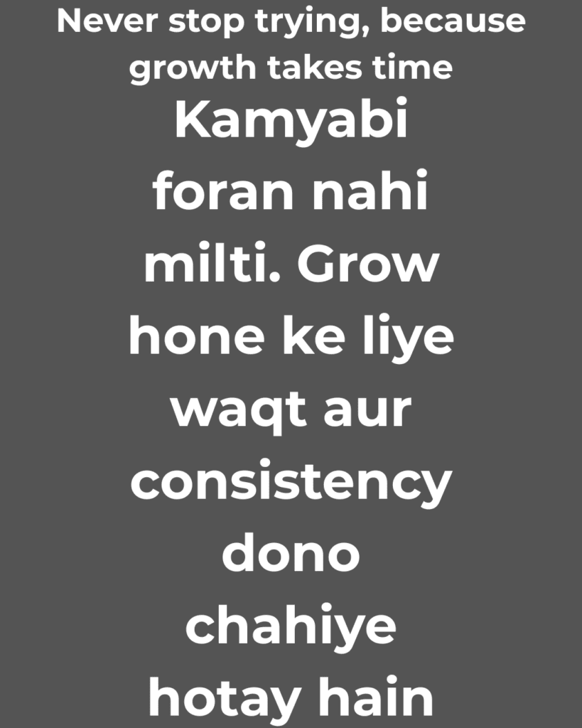 Kamyabi foran nahi milti. Grow hone ke liye waqt aur consistency dono chahiye hotay hain.