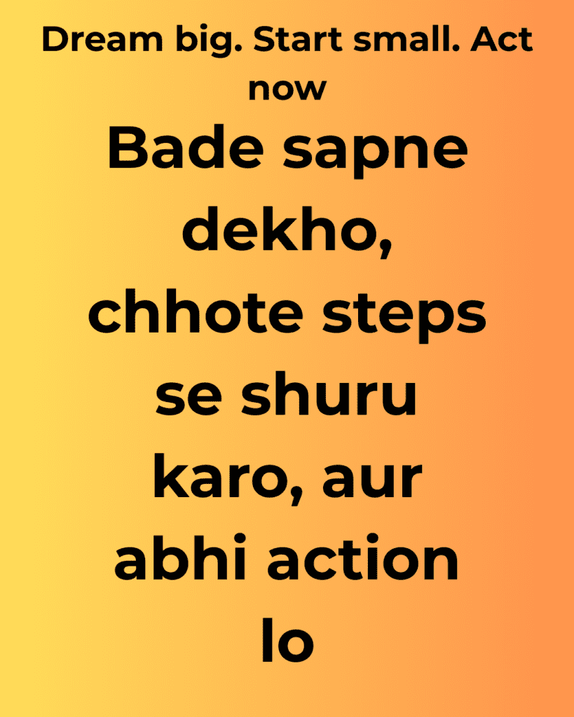 Bade sapne dekho, chhote steps se shuru karo, aur abhi action lo.