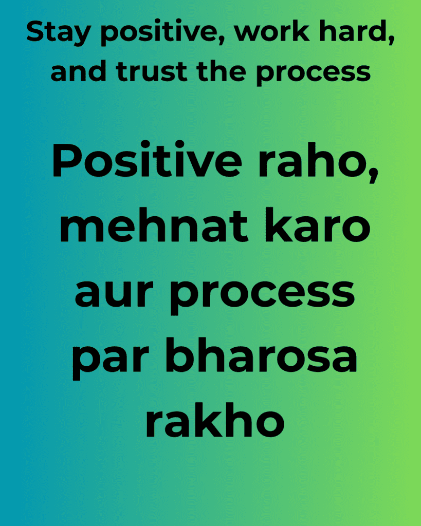 Positive raho, mehnat karo aur process par bharosa rakho.