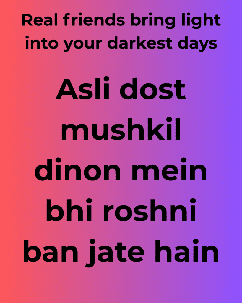 Asli dost mushkil dinon mein bhi roshni ban jate hain.
