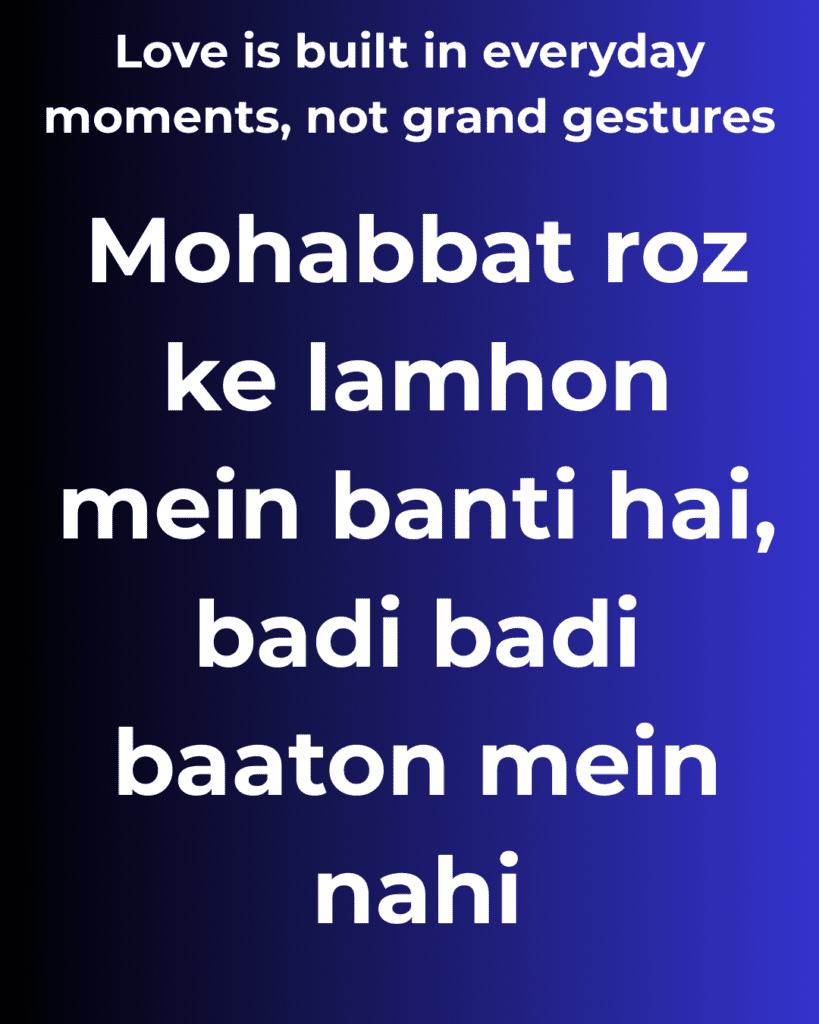Mohabbat roz ke lamhon mein banti hai, badi badi baaton mein nahi.